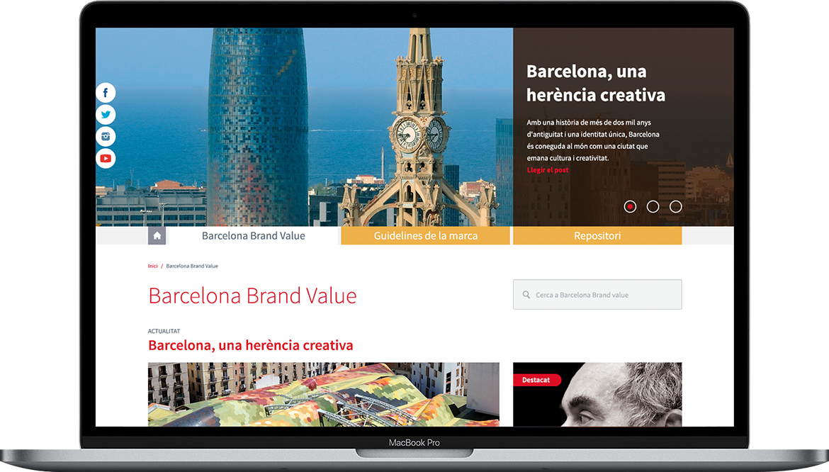 The structure of the website was given by the client and was based on the existence of three fundamental sections, from which we have access to all the content. The first section presented editorial contents of a very diverse nature, related to art and culture trends. The second one is based on outstanding news related to the city of Barcelona. And the third was a repository of downloadable documents of diverse nature.